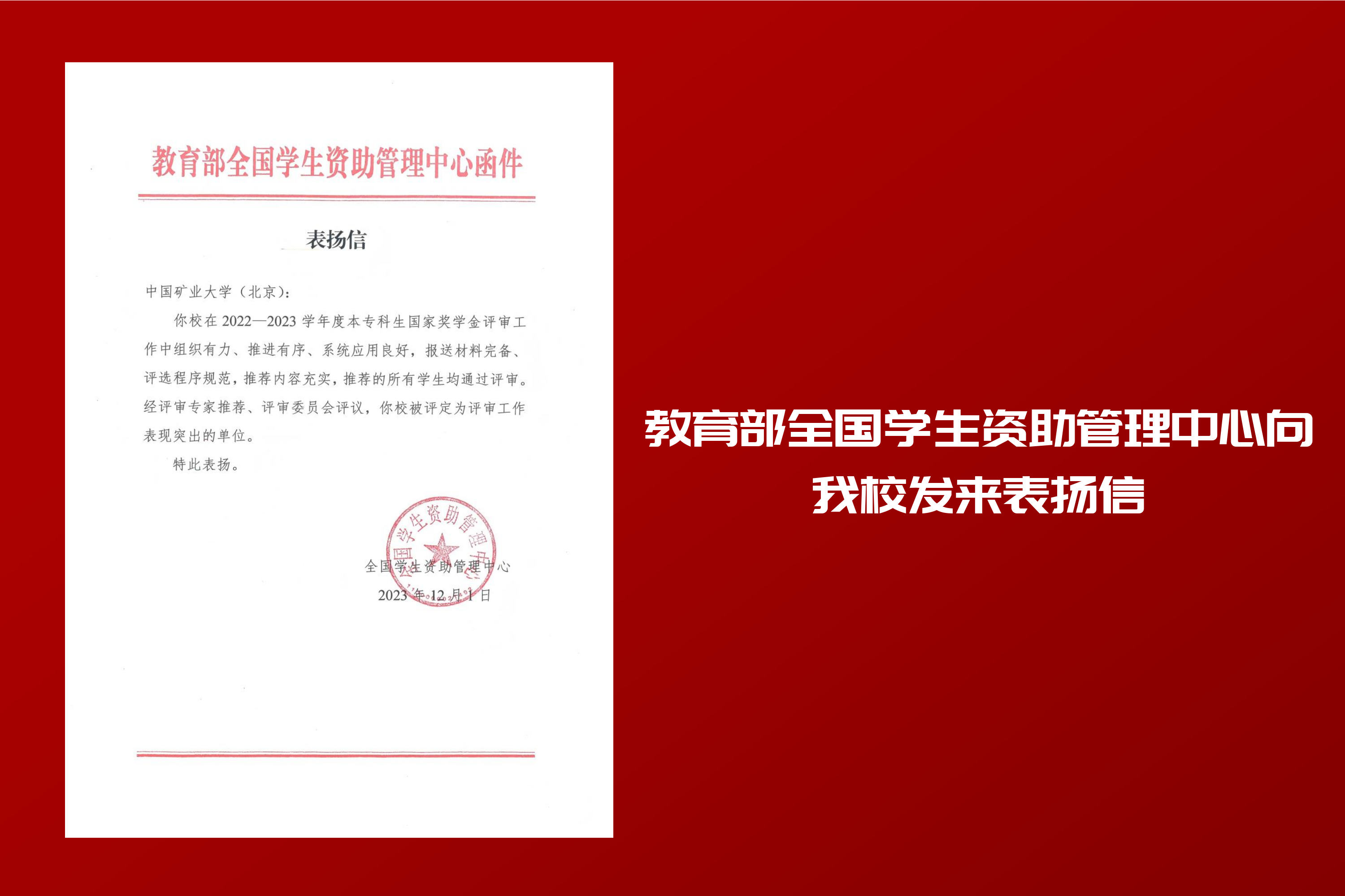 日前,教育部全国学生资助管理中心向我校发来表扬信,对我校2022-2023学年度本科生国家奖学金评审工作进行表扬。表扬信中指出,我校在2022—2023学年度本专科生国家奖学金评审工作中组织有力、推进有序、系统应用良好,报送材料完备、评选程序规范,推荐内容充实,推荐的所有学生均通过评审。经评审专家推荐、评审委员会评议,学校被评定为评审工作表现突出的单位。多年来,我校本着公开、公平、公正、择优的原则,严格按照国...