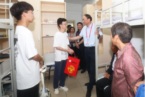 新生报到期间,校长葛世荣带队慰问2023级新生。葛世荣与同学们亲切交谈,了解学生报到情况、专业学习情况和对学校新环境的适应情况。他嘱咐同学们要珍惜大学时光,积极进取,努力学习专业知识;宿舍成员间生活上要互帮互助,学习上要比学赶超、共同进步,并向同学们送去了慰问品,表达了学校对新生的关心和慰问。