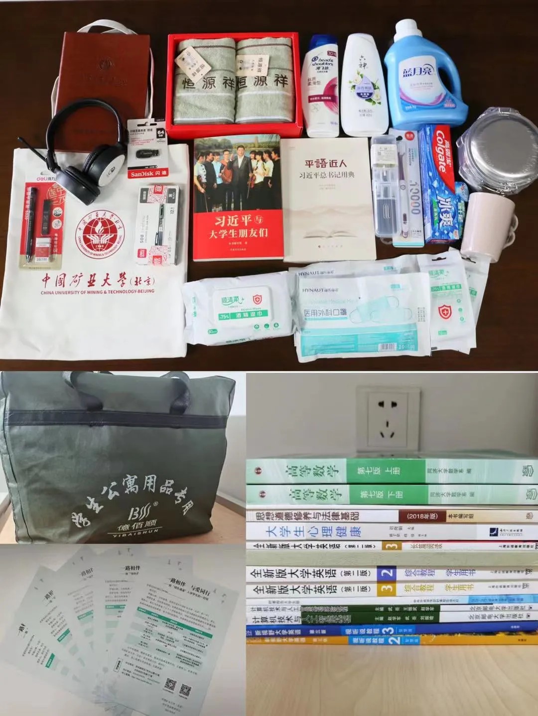 2.学习用品:矿大帆布包、U盘、英语听力耳机、签字笔、铅笔套装、笔记本;