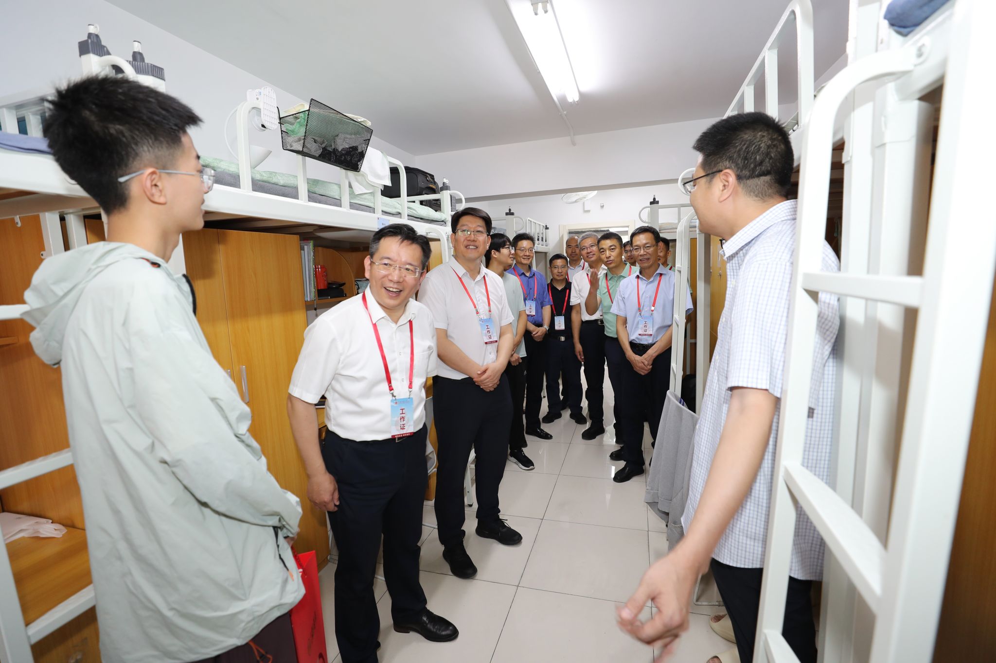 9月1日上午,校党委书记韩尚峰,校长、党委副书记刘波,副校长崔希民,校党委副书记安宇,副校长谭凯、汪文生慰问2025级新生。校领导与同学们亲切交谈,了解他们的报到情况和对学校新环境的适应情况,嘱咐同学们要珍惜大学时光,努力学习专业知识;宿舍成员间生活上要互相帮助,学习上要比学赶超、共同进步,并嘱咐每一位工作人员都要细致入微,确保每一位新生都能感受到学校的关怀和温暖。