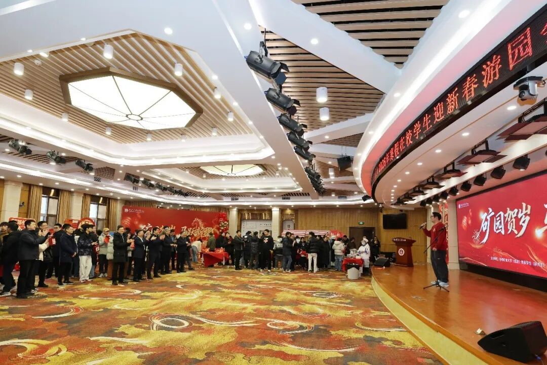 刘波发表致辞,他代表学校党委、行政,向全体寒假在校学生及其家人致以诚挚的新春祝福,向坚守校园一线工作的全体教职工,以及关心支持学校发展的广大校友与社会各界人士表示衷心感谢。