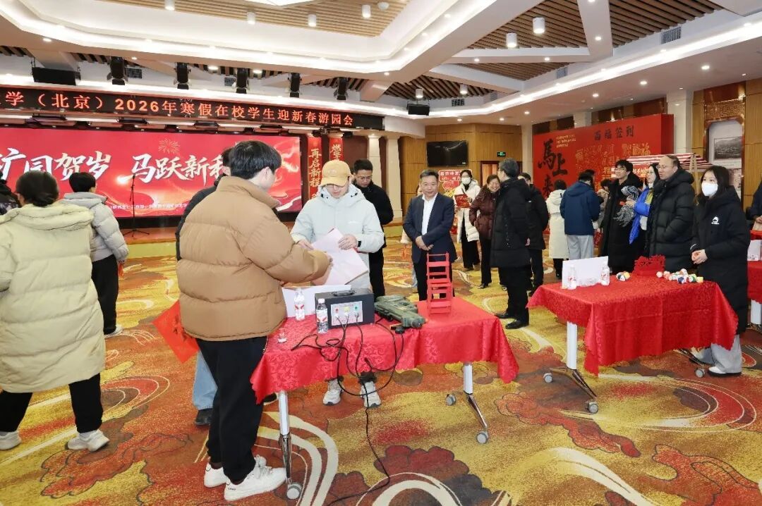 北方小年至,新春佳节近。为丰富寒假在校学生的校园生活,营造欢乐祥和的节日氛围,2月10日,学校在福中苑举办“矿园贺岁 马跃新程”——中国矿业大学(北京)2026年寒假在校学生迎新春游园会。